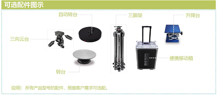 可選配件: 專業(yè)三角架,立柱、自動(dòng)轉(zhuǎn)臺(tái)、手動(dòng)轉(zhuǎn)臺(tái)。